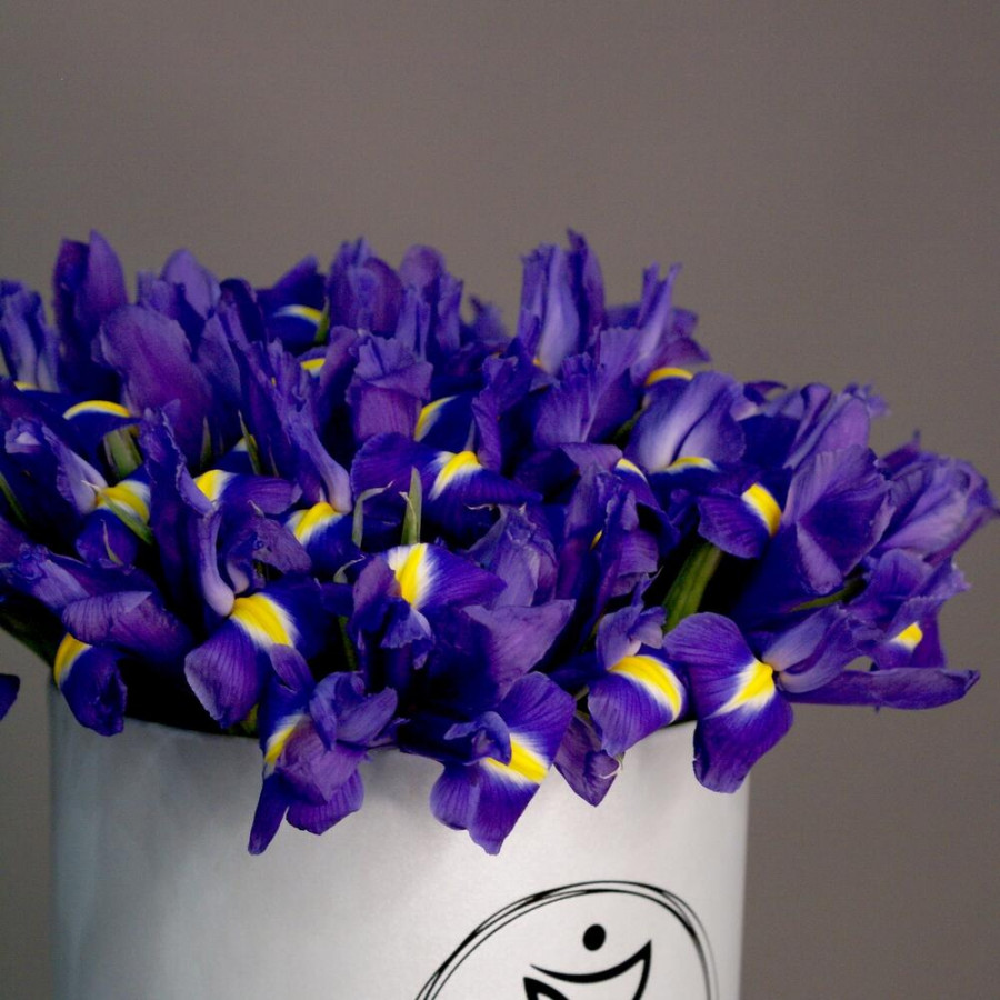На фото 25 фиолетовых ирисов в коробке. В составе: ирис 25 шт, оазис флористический 1 шт, корзина (s) 1 шт, атласная лента 1 шт, . Все цветы свежие и ароматные, букет красиво оформлен и отлично подходит для подарка. Доступна доставка цветов или самовывоз.