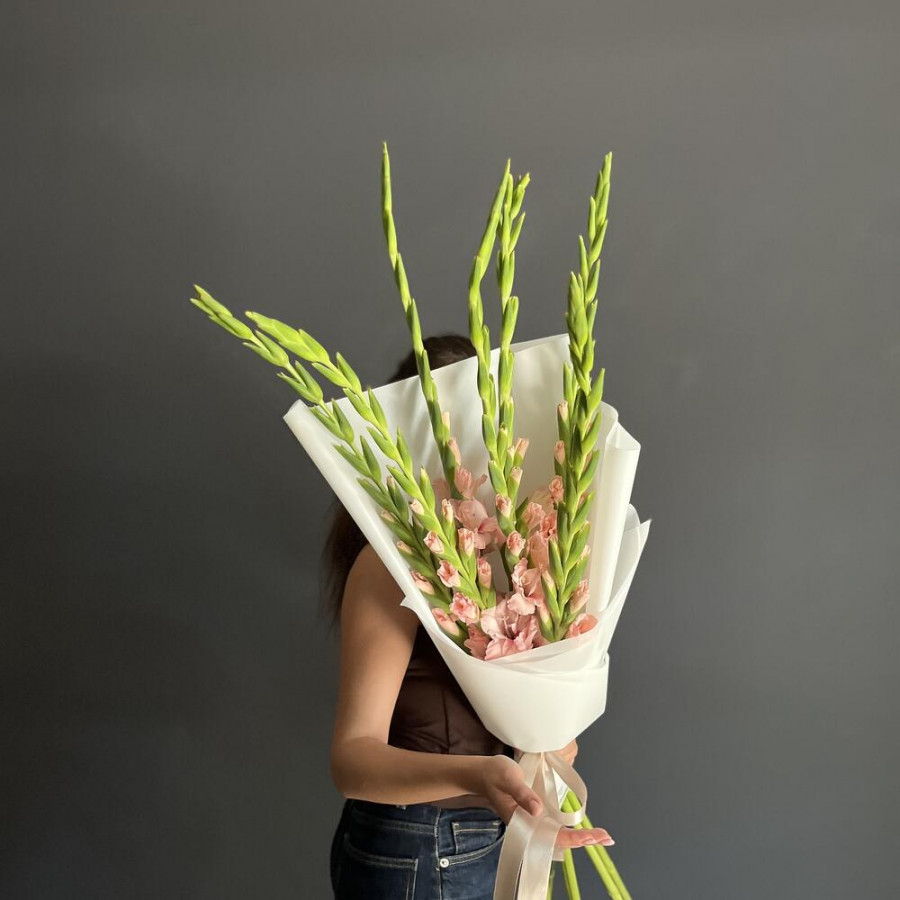 Лента атласная - 1 шт. Гладиолус - 7 шт. Авторская упаковка - 1 шт.