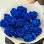 На фото букет из 15 синих роз. В составе: роза (синяя) 15 шт, дизайнерская упаковка 1 шт, атласная лента 1 шт, . Все цветы свежие и ароматные, букет красиво оформлен и отлично подходит для подарка. Доступна доставка цветов или самовывоз.