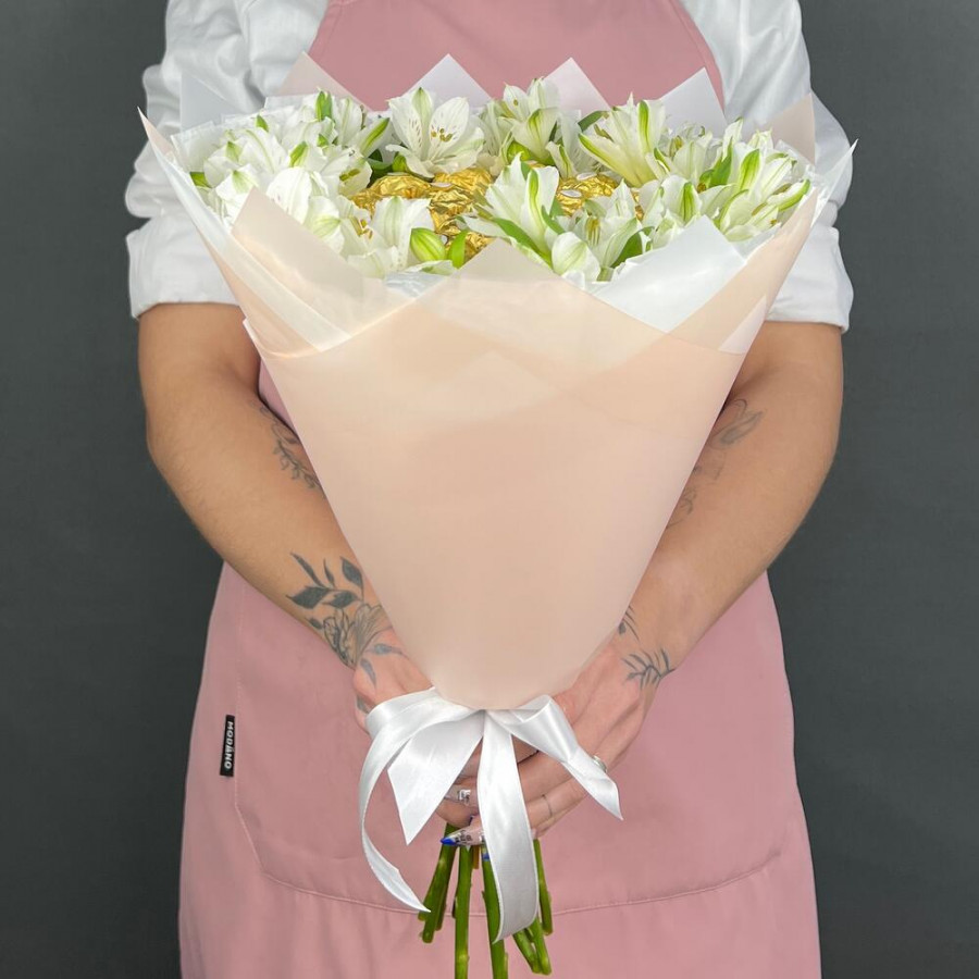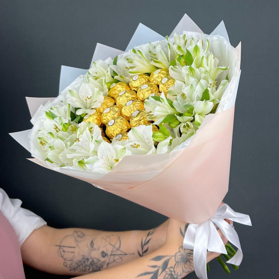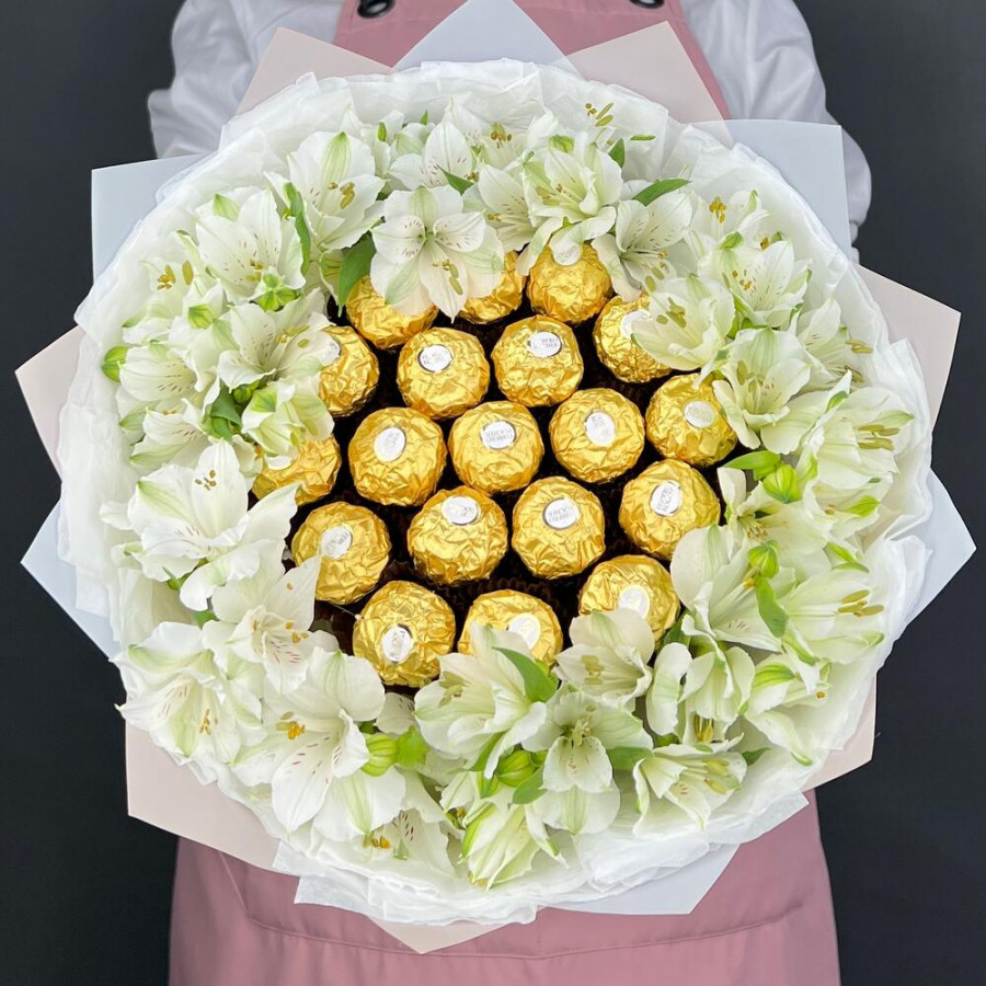 Букет из конфет Ferrero Rocher и и альстромерии в Альметьевске