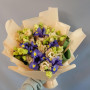 Букет из синих ирисов и кремовых эустом в Альметьевске