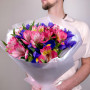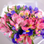 Букет из синих ирисов из розовых альстромерий в Альметьевске