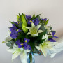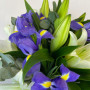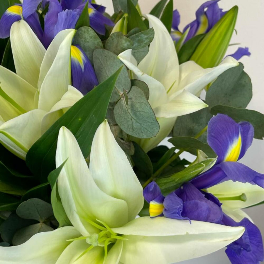 Букет из белых лилий с синими ирисами в Альметьевске